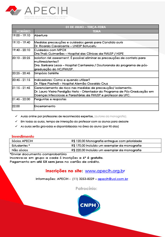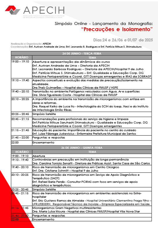 Simpósio On-line - Lançamento da Monografia: “Precauções e Isolamento”